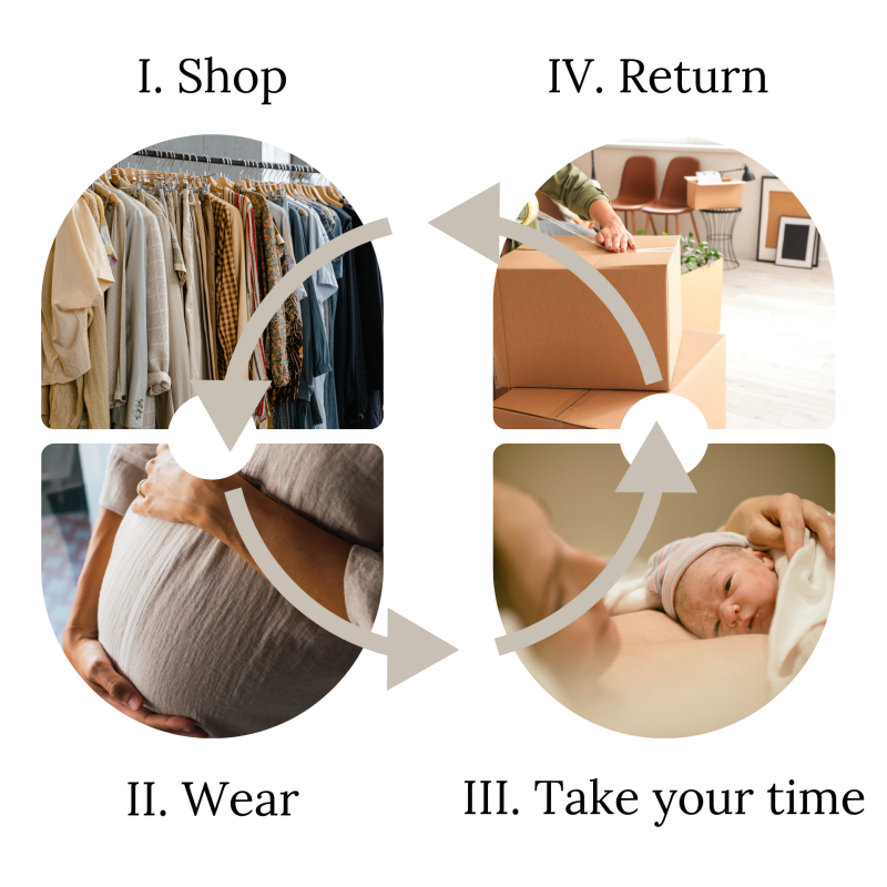 Bij het Zusje van Saar mag je preloved positiekleding kopen, dragen en terugsturen na gebruik.