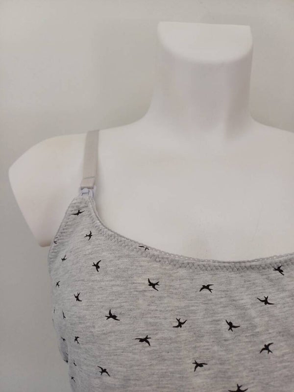 Een fijn basic voedingshemdje in de kleur grijs met zwarte print. Een echte musthave voor als je borstvoeding geeft!