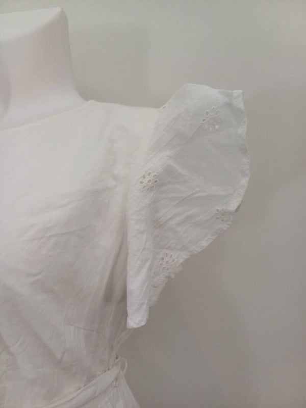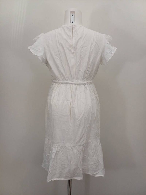 Prachtige witte positiejurk met leuk patroon en ruffle mouwen. Een heerlijk jurkje om je mooie groeiende buik in te laten zien deze zomer.