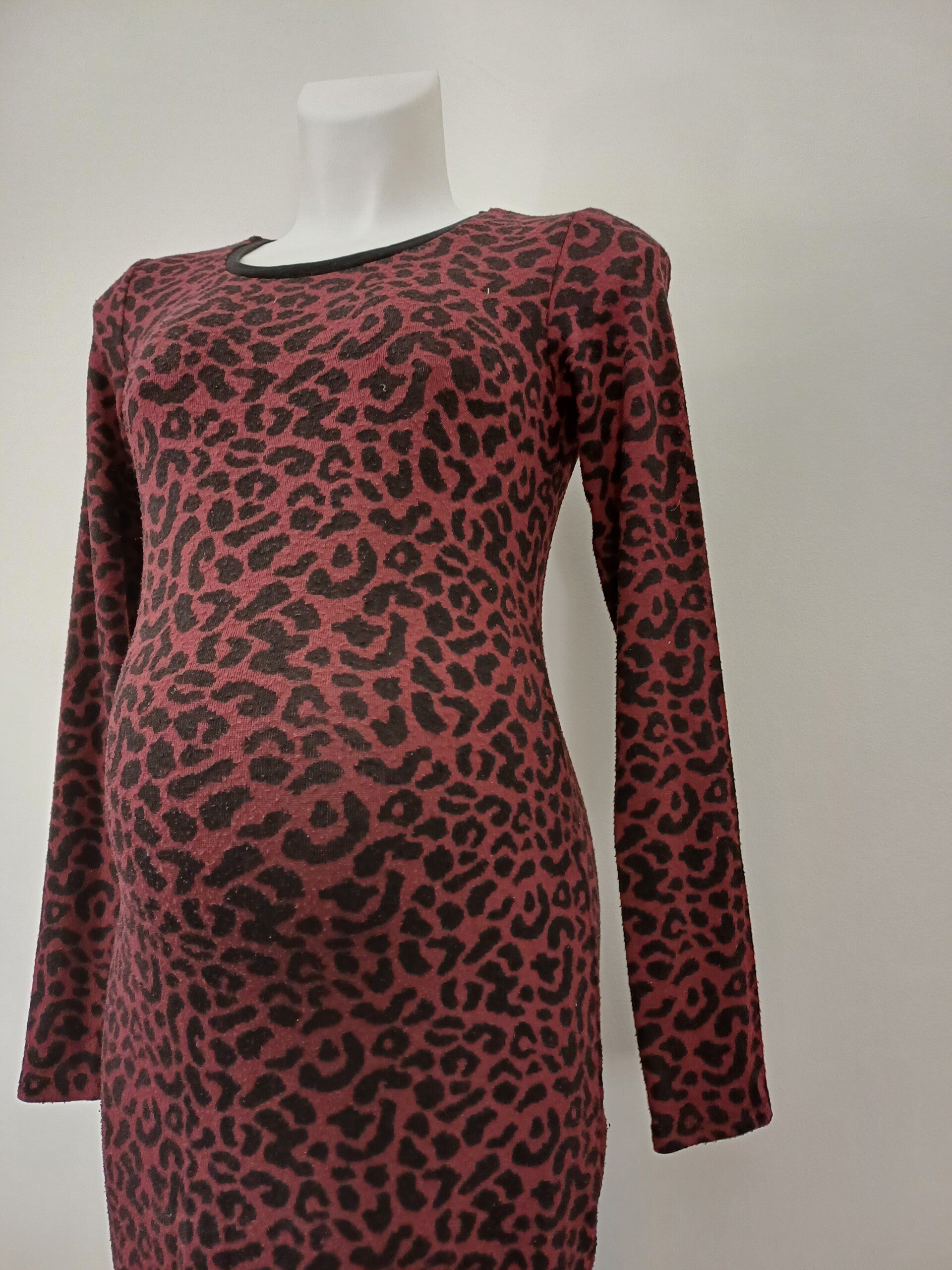 Prachtige donkerrood/zwart gevlekte positiejurk. Deze jurk is ook goed te dragen in maat S.