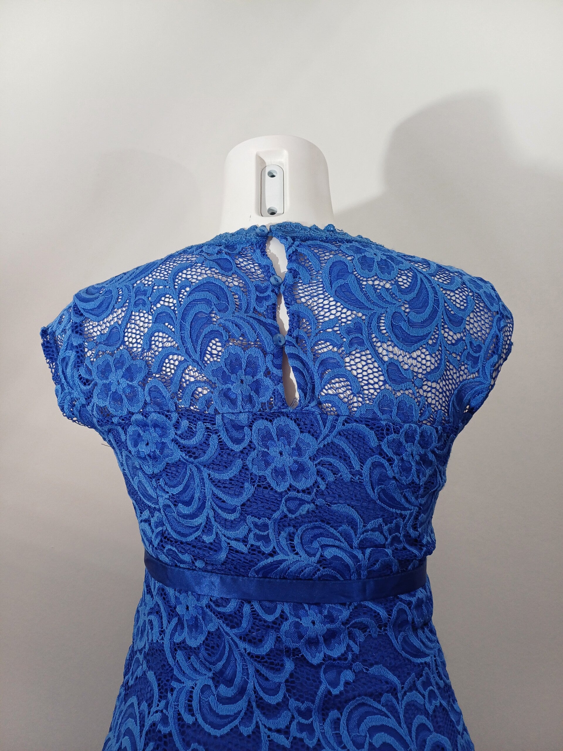 Prachtige kanten zwangerschapsjurk in de kleur kobaltblauw. Deze jurk is heel erg geschikt voor een feestelijke gelegenheid. De jurk is te dragen met of zonder centuur.