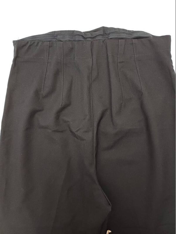 Prachtige zwarte zwangerschapspantalon. De pantalon heeft aan de voorkant een band die heerlijk over je buik valt en achter is de broek mooi afgewerkt met plooitjes en een elastische band.